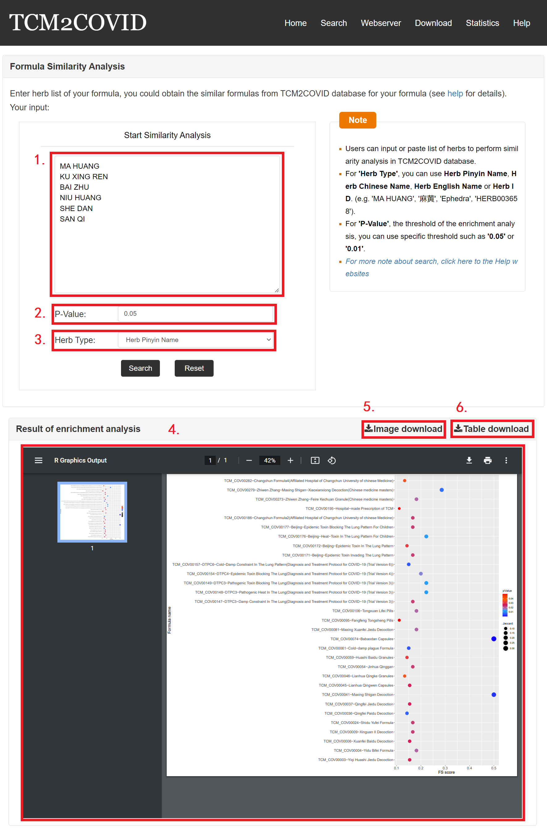 For user convenience, TCM2COVID launches a webserver for formula similarity analysis, First, TCM2COVID quantifies the similarity between queried formula q and documented formula i using the formula similarity (FS) score, which is calculated by the Jaccard similarity coefficient: