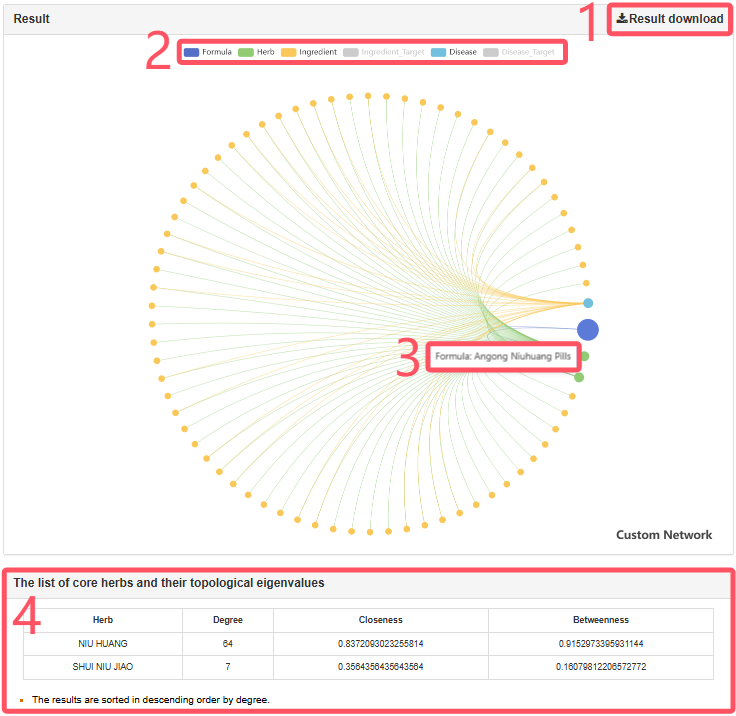 1. Result Download: By clicking “Result download,” users can obtain the corresponding JSON data file for the graph.